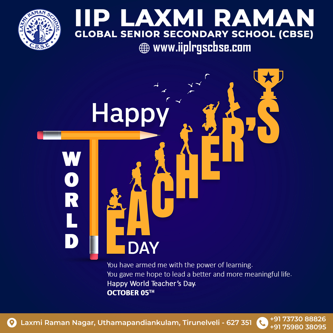 "Happy World Teacher’s Day! ? Celebrating the guiding lights who inspire, educate, and shape the future. Thank you, teachers, for your endless dedication! ?? #WorldTeachersDay #ThankYouTeachers #IIPLaxmiRamanCBSE #InspiringMinds #ThankATeacher #IIPLaxmiRaman"